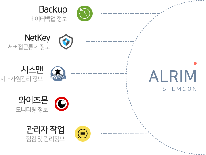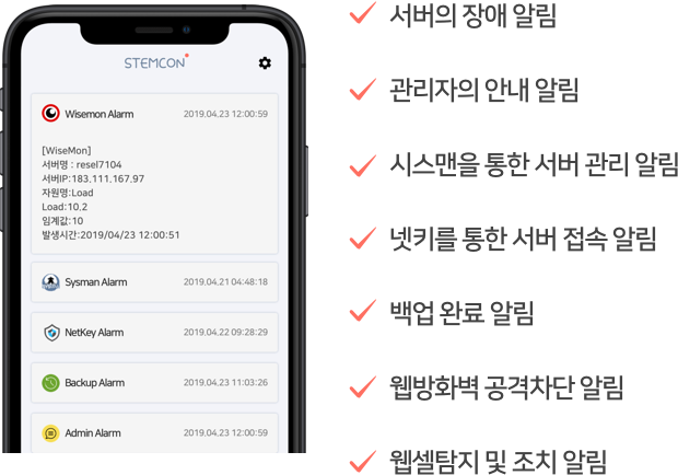 스템콘 알림 서비스 스템콘 플랫폼을 통해 위탁 서버 관리 서비스를 받는 고객을 위한 메시지 푸시 서비스입니다. 서버관리 플랫폼에서 발생하는 이벤트 및 메시지를 고객에게 실시간으로 전달합니다.